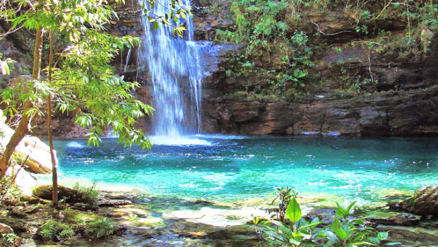 Na cidade de Cavalcante, parte da Chapada dos Veadeiros, as águas cristalinas e azuis da cachoeira Santa Bárbara encanta qualquer mortal.